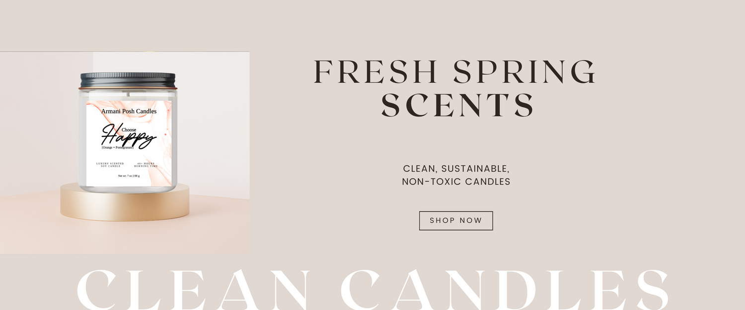 Armani Posh candles are made with 100% natural soy. Soy is non-toxic, burns clean and slowly. Our candles contain carefully sourced organic natural elements that are hand-poured in small batches. Our fragrances are specially formulated to inspire and cultivate the feeling of losing yourself in the present moment and appreciating what you have.